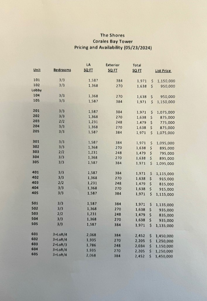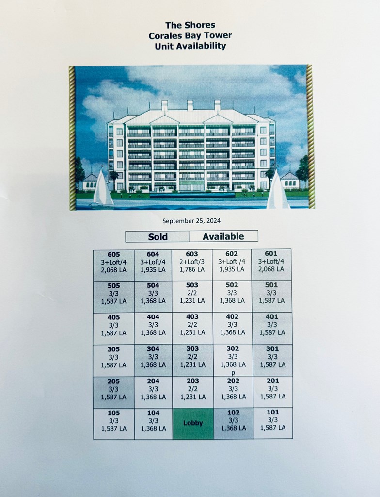 The Corales Bay tower adds a new dimension to living at The Shores, with Marina waterfront views, your own boat dock accommodating jet skis, sailing, fishing or cruising boat. The beautiful courtyard, large pool, jacuzzi, cabanas and fire pit make the perfect setting for fantastic days and romantic sunsets. The personal feel of only twenty-nine condominium units in a gorgeous six story building will radiate charm and luxury. Complex is under construction, estimated second qtr. 2026 completion. Additional $100.00 per month for The Shores Community HOA. Additional Unit in This Complex Avail.