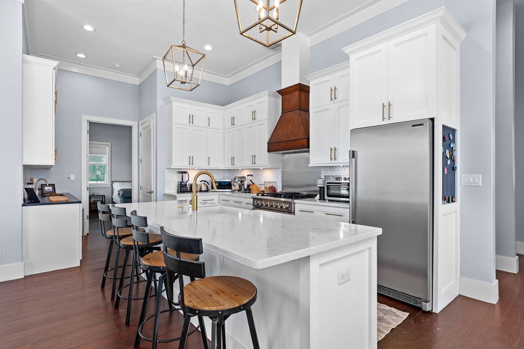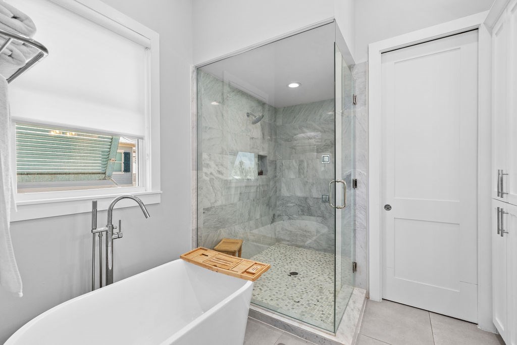 Nestled in the Shores, this exquisite four-bedroom, three-bathroom home combines luxury and modern comfort. Elegant hardwood floors, expansive large-format tiles, and a gas fireplace create a cozy and sophisticated living area. Tech-savvy individuals will appreciate Starlink Internet and a Control4 automation system. The chef’s paradise kitchen features a gas range, custom cabinets, and quartz countertops. The master bathroom is a spa-like retreat with a marble shower and free-standing soaking tub. Beyond the interior, residents enjoy exclusive access to the Shores community’s amenities, including a pool, poolside bistro, pickleball, and tennis courts. Beachside setups provide ideal settings for sun-soaked outings. The whole-house water filter, booster pump, and backup generator ensure unparalleled comfort. This residence transcends habitation; it becomes a haven where you can thrive. Whether you immerse yourself in your home’s elegance or embrace the community’s amenities. Owner/Bro