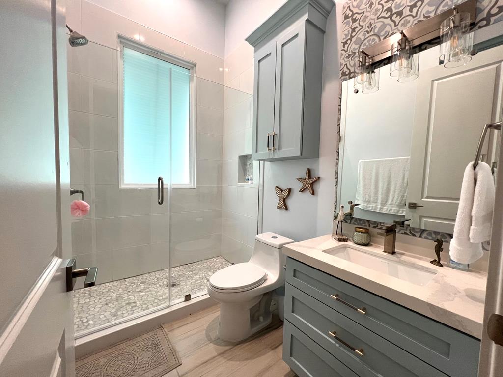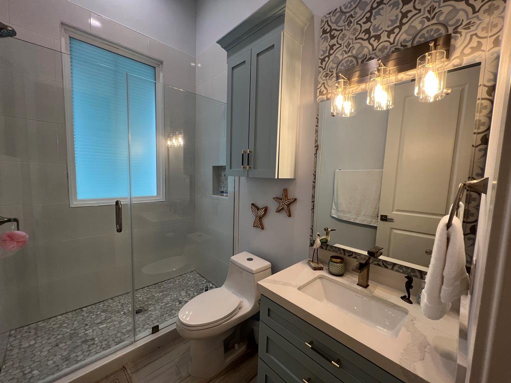 A charming cottage in The shores subdivision. Relax and enjoy the bayside in this gorgeous home with a an open floor plan feautering three bedrooms and four full baths. Spacious master bedroom with a nice french door that leads in to the large covered porch overlooking the hot tub. All tile floors, quartz countertops, high ceilings, and stainless steel appliances. Furnished and move-in ready!!!
